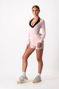 Inspired by timeless elegance, the Sophia Ballet Wrap Top effortlessly enhances your casual wardrobe or adds a touch of sophistication to your favorite athleisure looks. With a plunge front and a waist tie, this top is designed to enhance your hourglass. Wear over your favourite Glaze crop and elevate your look.